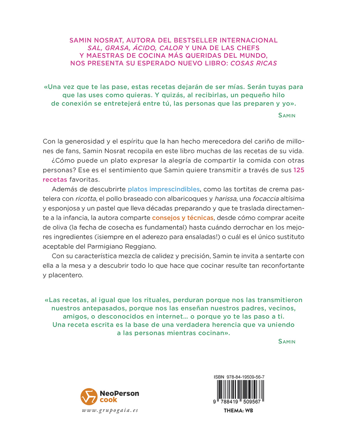 SAMIN NOSRAT, AUTORA DEL BESTSELLER INTERNACIONAL SAL, GRASA, ÁCIDO, CALOR Y UNA DE LAS CHEFS Y MAESTRAS DE COCINA MÁS QUERIDAS DEL MUNDO, NOS PRESENTA SU ESPERADO NUEVO LIBRO: COSAS RICAS