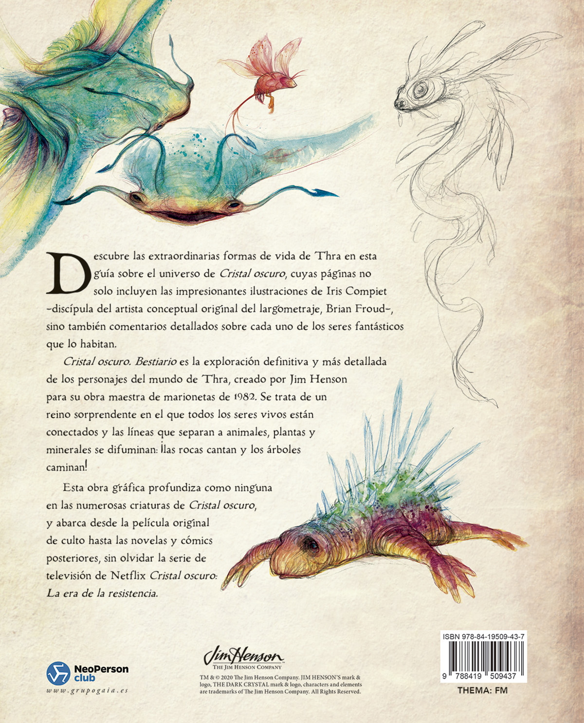 Descubre las extraordinarias formas de vida de Thra en esta guía sobre el universo de Cristal oscuro, cuyas páginas no solo incluyen las impresionantes ilustraciones de Iris Compiet -discípula del artista conceptual original del largometraje, Brian Froud-, sino también comentarios detallados sobre cada uno de los seres fantásticos que lo habitan.