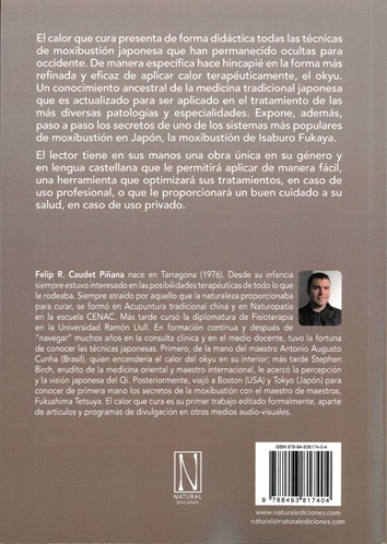 El calor que cura presenta de forma didáctica todas las técnicas de moxibustión japonesa que han permanecido ocultas para occidente. De manera específica hace hincapié en la forma más refinada y eficaz de aplicar calor terapéuticamente, el okyu. Un conocimiento ancestral de la medicina tradicional japonesa que es actualizado para ser aplicado en el tratamiento de las más diversas patologías y especialidades. Expone, además, paso a paso los secretos de uno de los sistemas más populares de moxibustión en Japón, la moxibustión de Isaburo Fukaya. El lector tiene en sus manos una obra única en su género y en lengua castellana que le permitirá aplicar de manera fácil, una herramienta que optimizará sus tratamientos, en caso de uso profesional, o que le proporcionará un buen cuidado a su salud, en caso de uso privado.