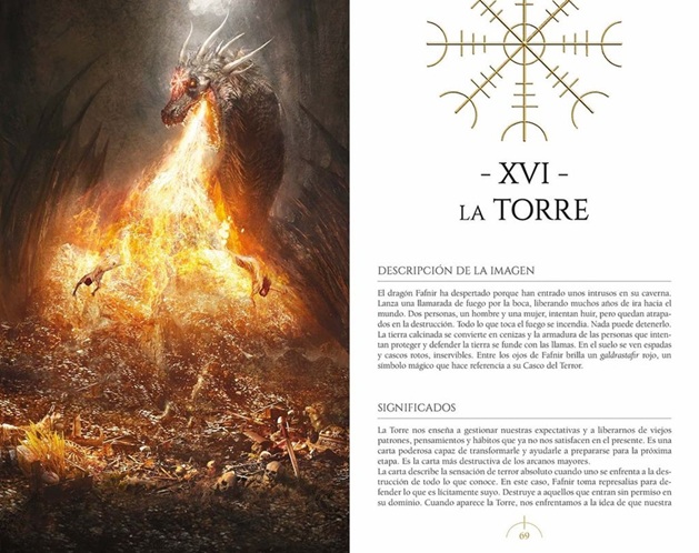 El tarot de las runas muestra cómo las runas se relacionan con el tarot, y viceversa, para crear algo singular: un camino de magia primigenia, de adivinación clara y espiritualidad pura. Cada carta está vinculada tanto a una antigua deidad nórdica como a una runa, cuyo símbolo se integra en las imágenes de las cartas.