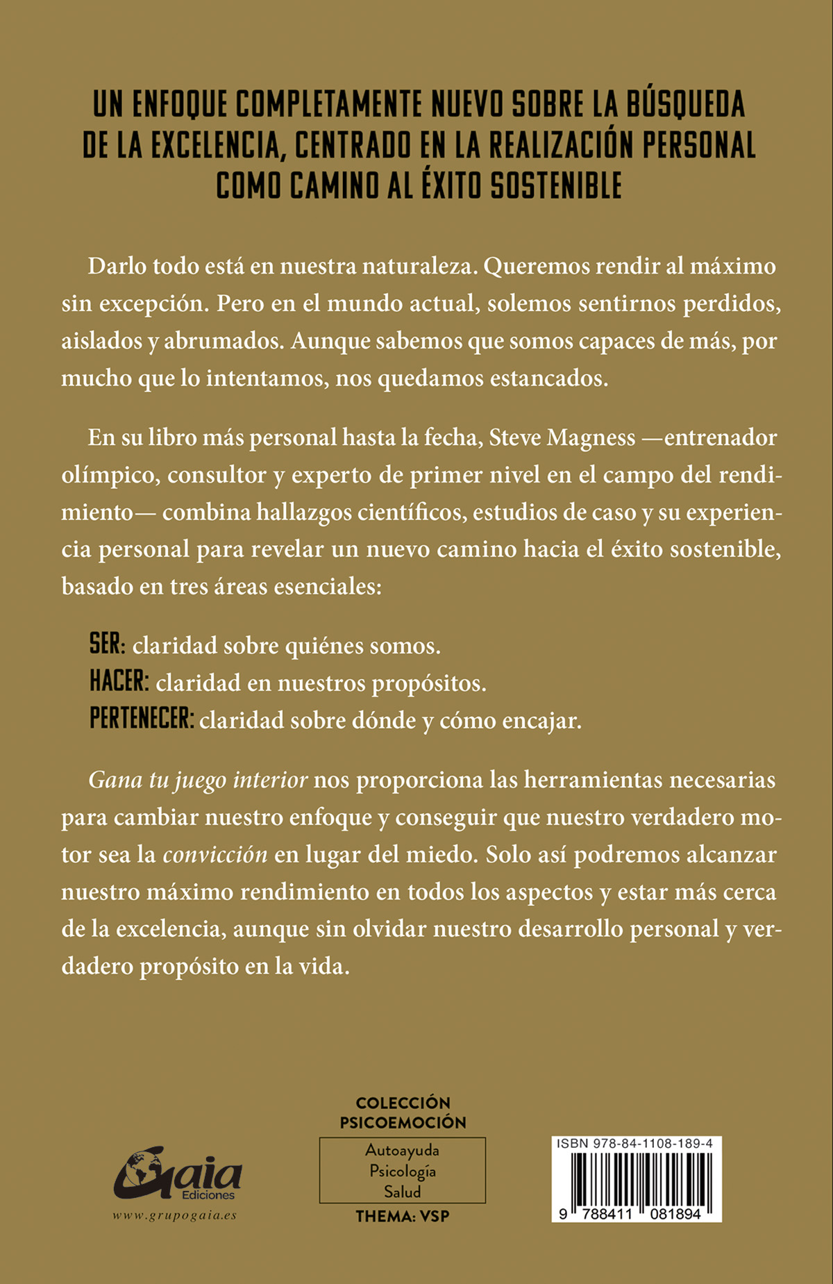 Gana tu juego interior nos proporciona las herramientas necesarias para cambiar nuestro enfoque y conseguir que nuestro verdadero motor sea la convicción en lugar del miedo. Solo así podremos alcanzar nuestro máximo rendimiento en todos los aspectos y estar más cerca de la excelencia, aunque sin olvidar nuestro desarrollo personal y verdadero propósito en la vida.