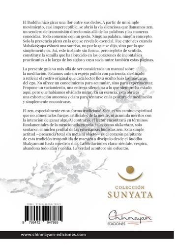 El zen, especialmente en su forma tradicional Soto, es un camino espiritual que no alimenta los fuegos artificiales de la mente, ni acumula méritos con la intención de ganar algo. Al contrario, el lector encontrará en términos fundamentales de la mencionada escuela, tales como shikantaza, solo sentarse, el núcleo central de la enseñanza budistas zen. Esta simple actitud – presencia total sin meta ni objeto – es el corazón palpitante de esta tradición trasmitida de maestro a discípulo desde el Buddha Shakayamuni hasta nuestros días. La invitación es clara: siéntate, respira, abandona todo afán y confía. La verdad acontece sin esfuerzo.