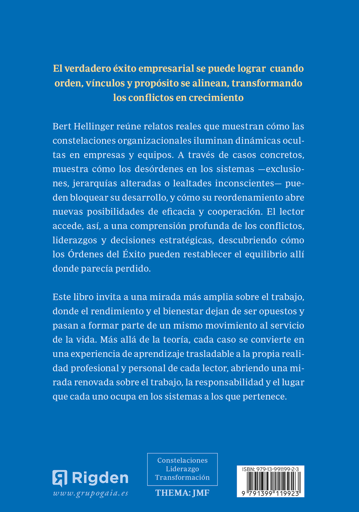 Bert Hellinger reúne relatos reales que muestran cómo las constelaciones organizacionales iluminan dinámicas ocultas en empresas y equipos. A través de casos concretos, muestra cómo los desórdenes en los sistemas —exclusiones, jerarquías alteradas o lealtades inconscientes— pueden bloquear su desarrollo, y cómo su reordenamiento abre nuevas posibilidades de eficacia y cooperación. El lector accede, así, a una comprensión profunda de los conflictos, liderazgos y decisiones estratégicas, descubriendo cómo los Órdenes del Éxito pueden restablecer el equilibrio allí donde parecía perdido.