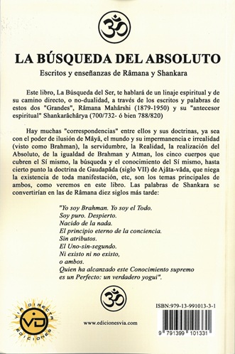 Esta obra trata de un linaje espiritual y de su camino directo, o no-dualidad, a través de los escritos y palabras de estos dos "Grandes", Râmana Mahârshi (1879-1950) y su "padre espiritual" Shankarâchârya (c. 700/788 - c. 732/820).