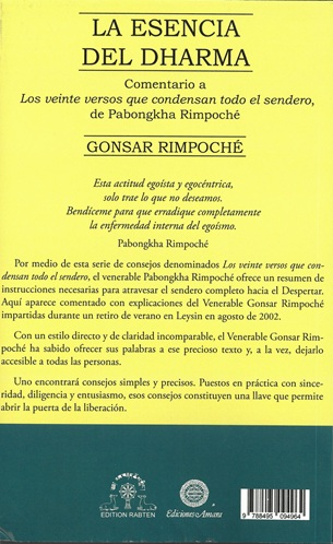 Con un estilo directo y de claridad incomparable, el Venerable Gonsar Rimpoché ha sabido ofrecer sus palabras a ese precioso texto, y a la vez, dejarlo accesible a todas las personas.