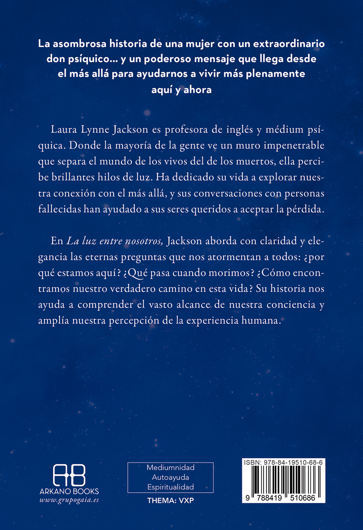 Laura Lynne Jackson es profesora de inglés y médium psíquica. Donde la mayoría de la gente ve un muro impenetrable que separa el mundo de los vivos del de los muertos, ella percibe brillantes hilos de luz. Ha dedicado su vida a explorar nuestra conexión con el más allá, y sus conversaciones con personas fallecidas han ayudado a sus seres queridos a aceptar la pérdida.
