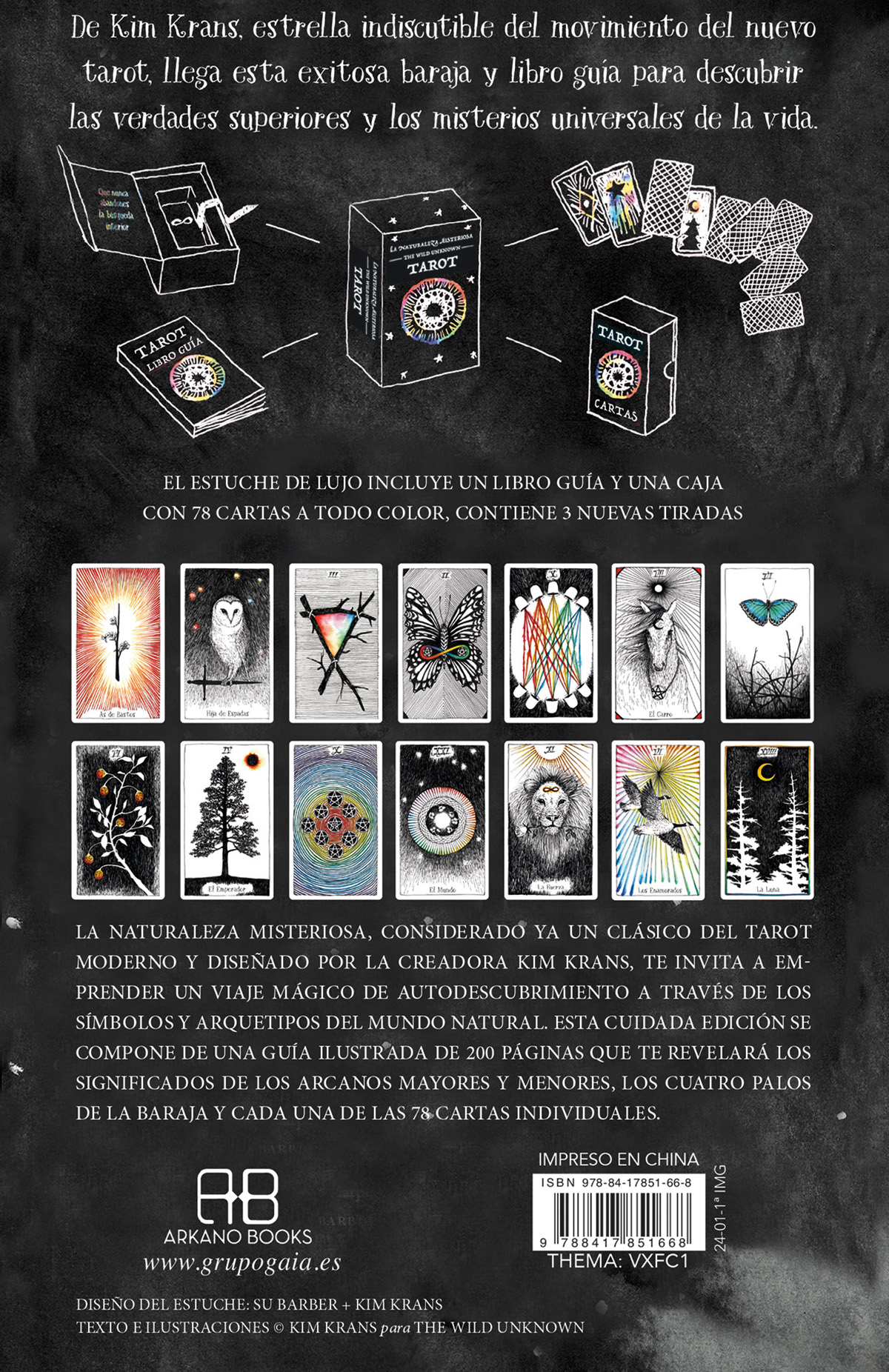 La naturaleza misteriosa, considerado ya un clásico del tarot moderno y diseñado por la creadora Kim Krans, te invita a emprender un viaje mágico de autodescubrimiento a través de los símbolos y arquetipos del mundo natural. Esta cuidada edición se compone de una guía ilustrada de 200 páginas que te revelará los significados de los arcanos mayores y menores, los cuatro palos de la baraja y cada una de las 78 cartas individuales.