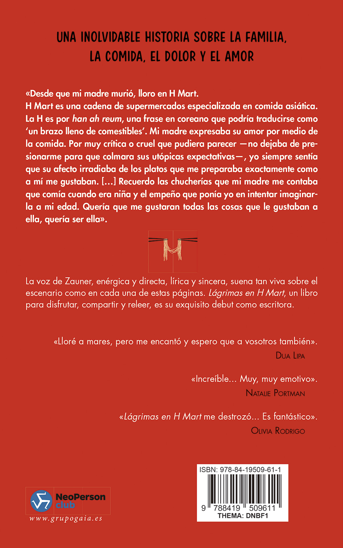 La voz de Zauner, enérgica y directa, lírica y sincera, suena tan viva sobre el escenario como en cada una de estas páginas. Lágrimas en H Mart, un libro para disfrutar, compartir y releer, es su exquisito debut como escritora.