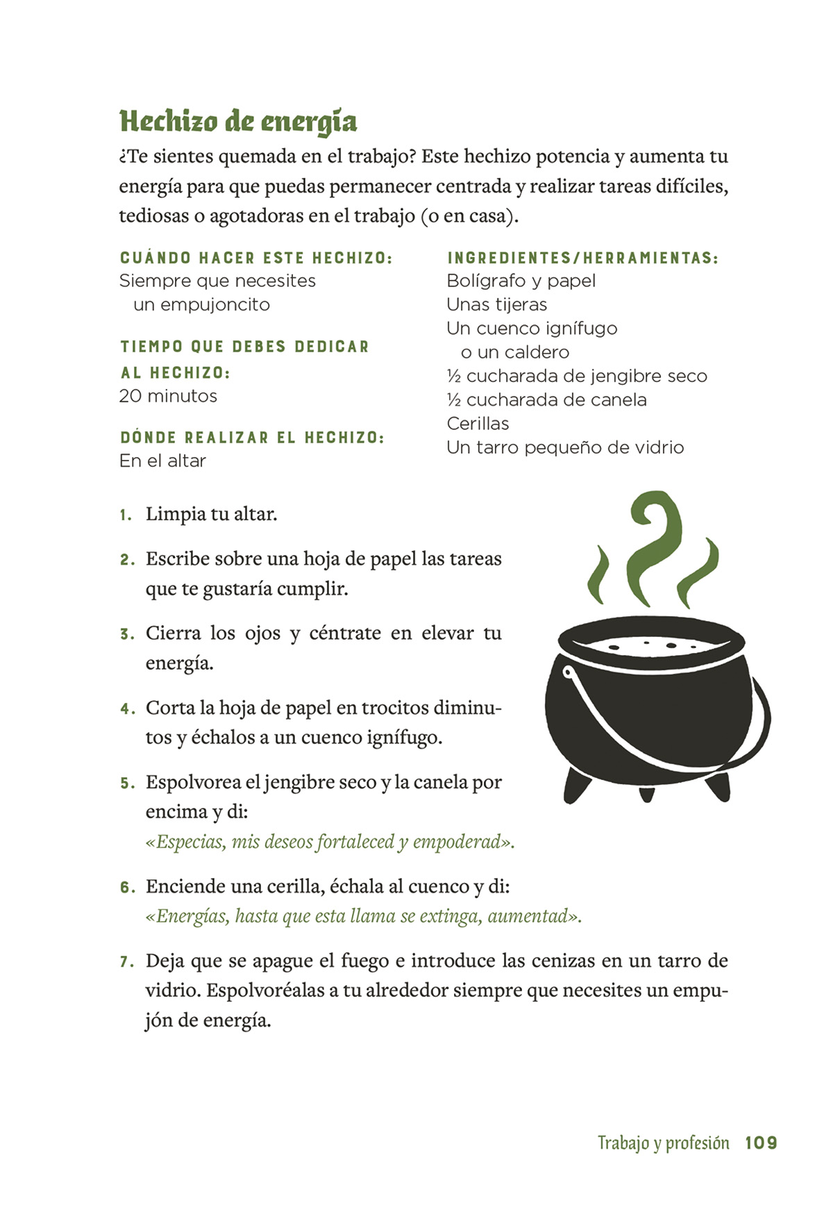 Prepara distintos encantamientos —por ejemplo, para encontrar un amor duradero, proteger a tus familiares y amigos, progresar en tu carrera y disfrutar de la vida que mereces—, y descubre cómo organizar tu espacio y canalizar la energía para acceder a tu poder.