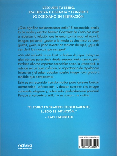 ¿Qué significa realmente tener estilo? El reconocido analista de moda y escritor Antonio González de Cosío nos invita a repensar la relación que tenemos con la ropa, el lujo y la imagen personal: ¿estar a la moda es sinónimo de buen gusto?, ¿vale la pena invertir en marcas de lujo?, ¿qué dicen de ti las marcas que escoges? Más allá del estilo no se limita a hablar de ropa. Incluye reglas básicas para elegir desde zapatos hasta joyería, pero también aborda aspectos esenciales como la urbanidad, el arte de ser un buen anfitrión, la importancia de regalar con intención y el saber adaptar nuestra imagen con gracia a medida que envejecemos. Éste es un recorrido transformador para quienes buscan autenticidad, sofisticación, y desean construir una imagen coherente, elegante y, sobre todo, profundamente personal. Porque el verdadero estilo no se compra: se cultiva. “El estilo es primero conocimiento, luego es intuición.” —Karl Lagerfeld.