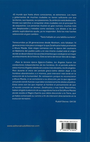 «Para la tercera época Egipcio-Caldea, los Ángeles fueron los conductores independientes de los hombres. En el período anterior estos mismos Ángeles obedecían a seres más elevados, los Arcángeles. Pero durante el inicio del período greco la no debían dejar a los hombres abandonados a sí mismos, para intervenir más tarde en la evolución de la humanidad. Se «retrasaron» porque no reconocieron a Ahura Mazda, ni se sometieron a su dirección, por lo que siguieron actuando siendo fuerzas cuya labor era básicamente obstaculizadora. Estos seres son los que inspiran al hombre el pensamiento de que el mundo consiste en átomos. Zarathustra y más tarde Nazarathos, habían dirigido la atención de sus seguidores hacia el Sol (Ahura Mazda) donde residía el Magno Espíritu que debía descender a la Tierra, que ya había comenzado su camino a fin de intervenir directamente en la evolución terrestre».
