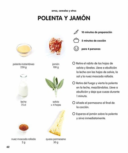 Crema de guisantes, ñoquis con boletus, pollo al curri, chili con carne, bacalao y crema de albahaca, polenta y jamón...
