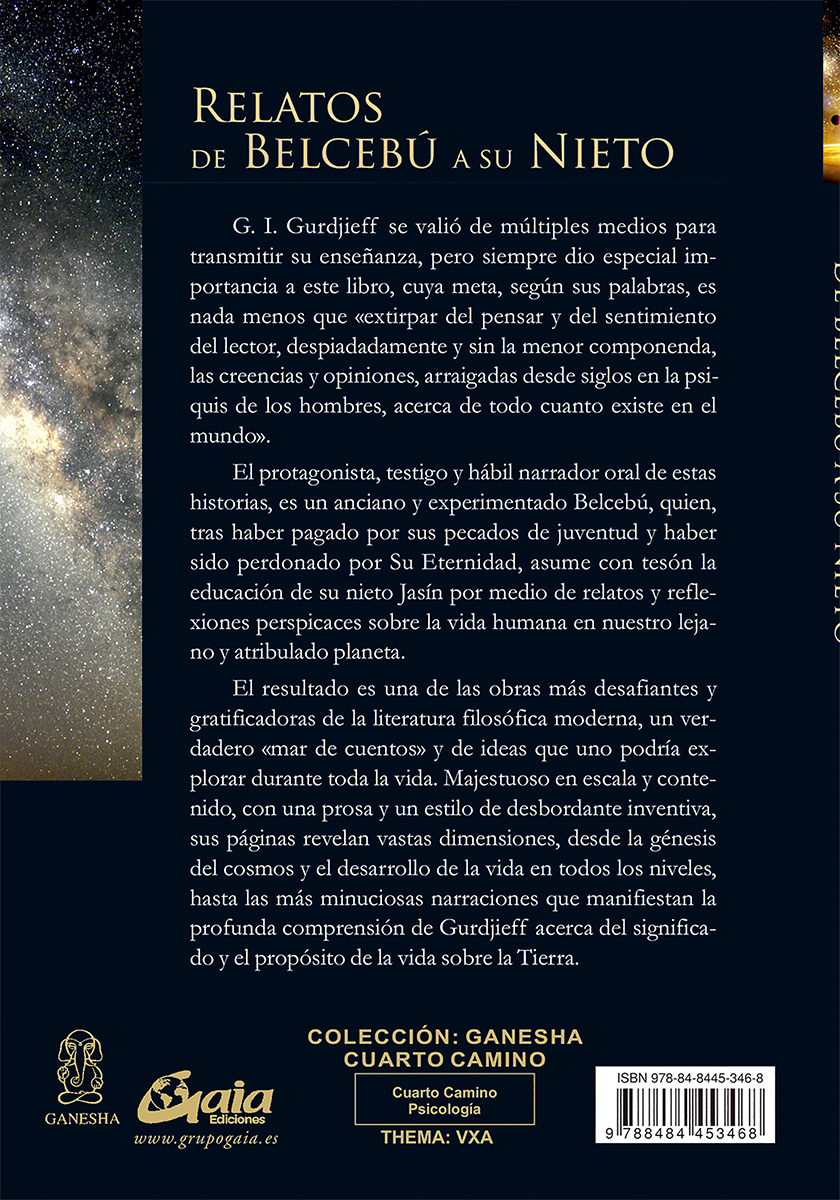 El resultado es una de las obras más desafiantes y gratificadoras de la literatura filosófica moderna , un verdadero «mar de cuentos» y de ideas que uno podría explorar durante toda la vida. Majestuoso en escala y contenido, con una prosa y un estilo de desbordante inventiva, sus páginas revelan vastas dimensiones, desde la génesis del cosmos y el desarrollo de la vida en todos los niveles, hasta las más minuciosas narraciones que manifiestan la profunda comprensión de Gurdjieff acerca del significado y el propósito de la vida sobre la Tierra.